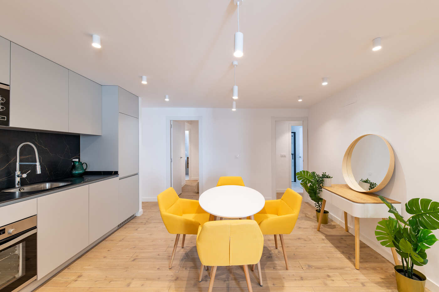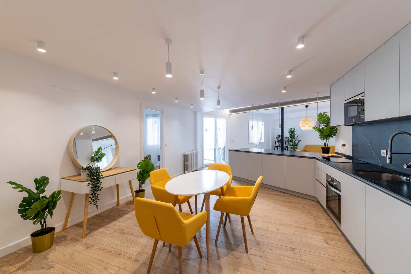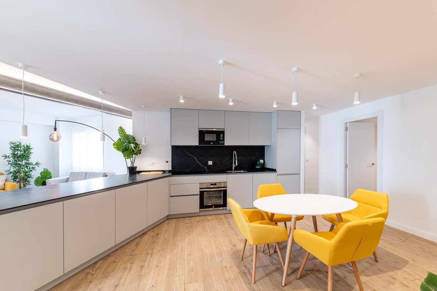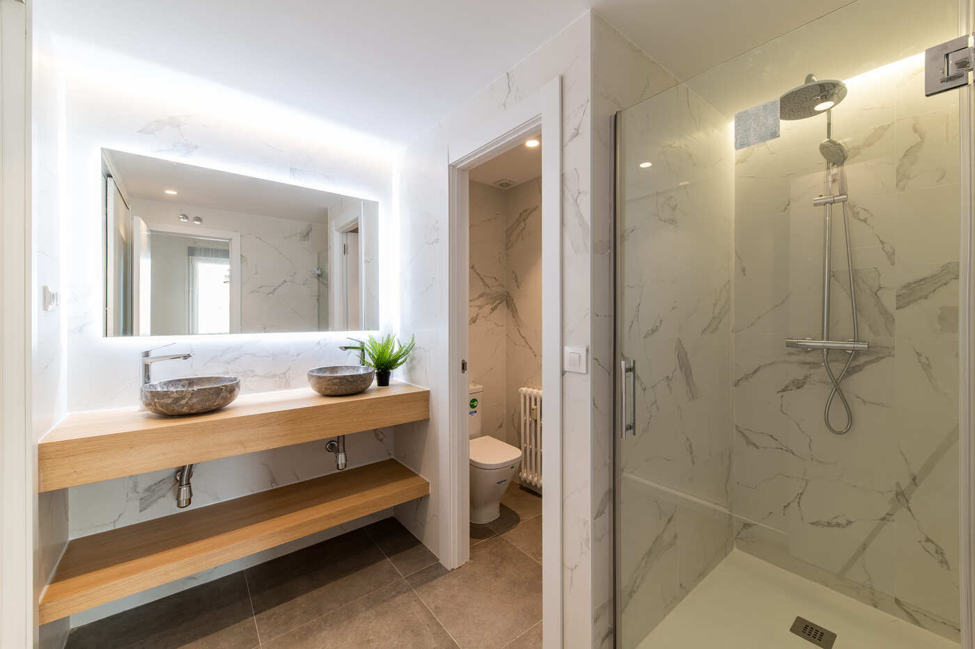 El piso se encontraba en su estado original y el deterioro propio del paso de los años había reducido su valor en el mercado. Esta fue la causa por la que los propietarios acudieron a nosotros. Luego de estudiar el caso y aprobar el proyecto la redistribución dio como resultado 3 amplios dormitorios, todos en suite, un aseo de cortesía y una gran cocina americana integrada al salón, por lo que ambos espacios ganaron en luminosidad y amplitud.