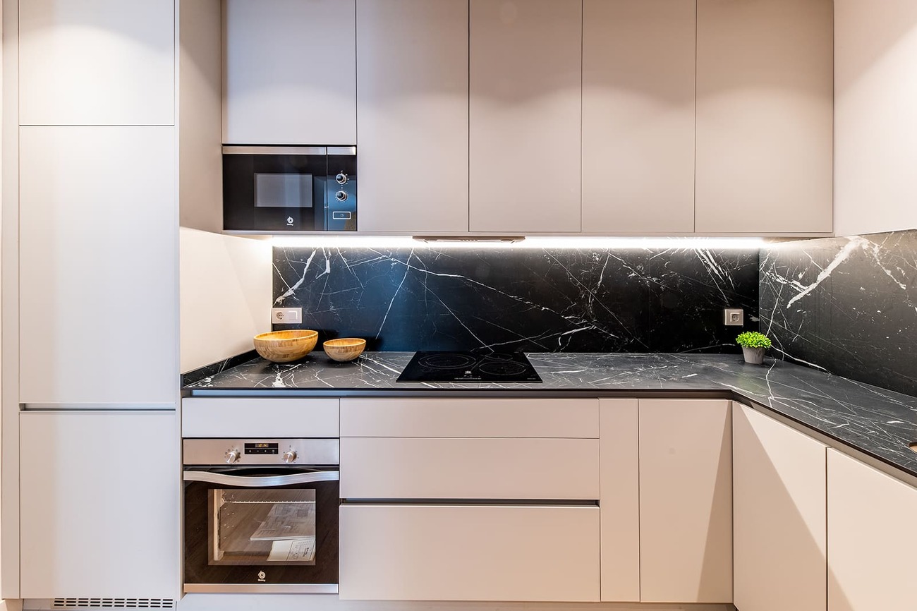 En cuanto a la distribución hemos conseguido 2 dormitorios dobles, un espacioso baño, una cocina que destaca por la calidad de los materiales utilizados y un amplio salón comedor.