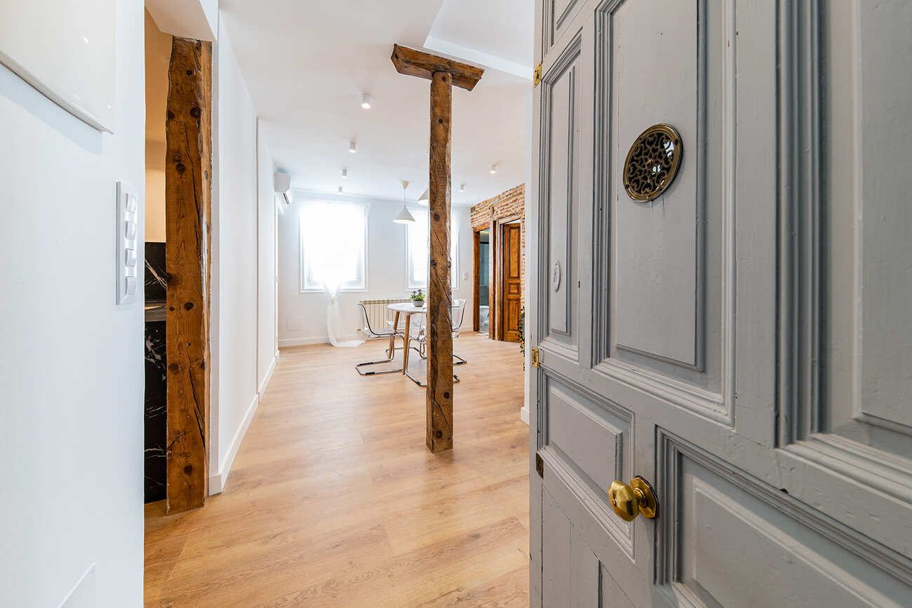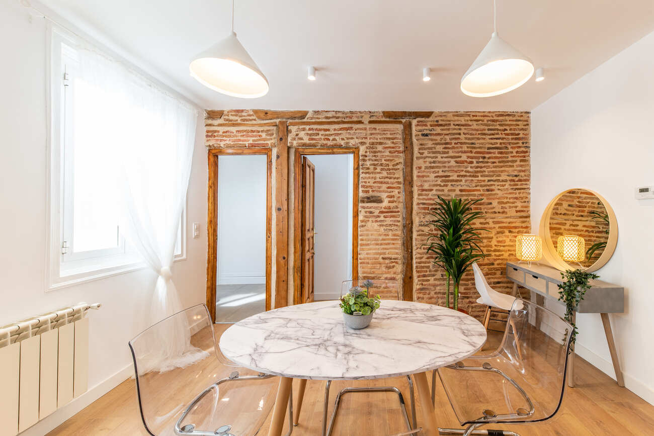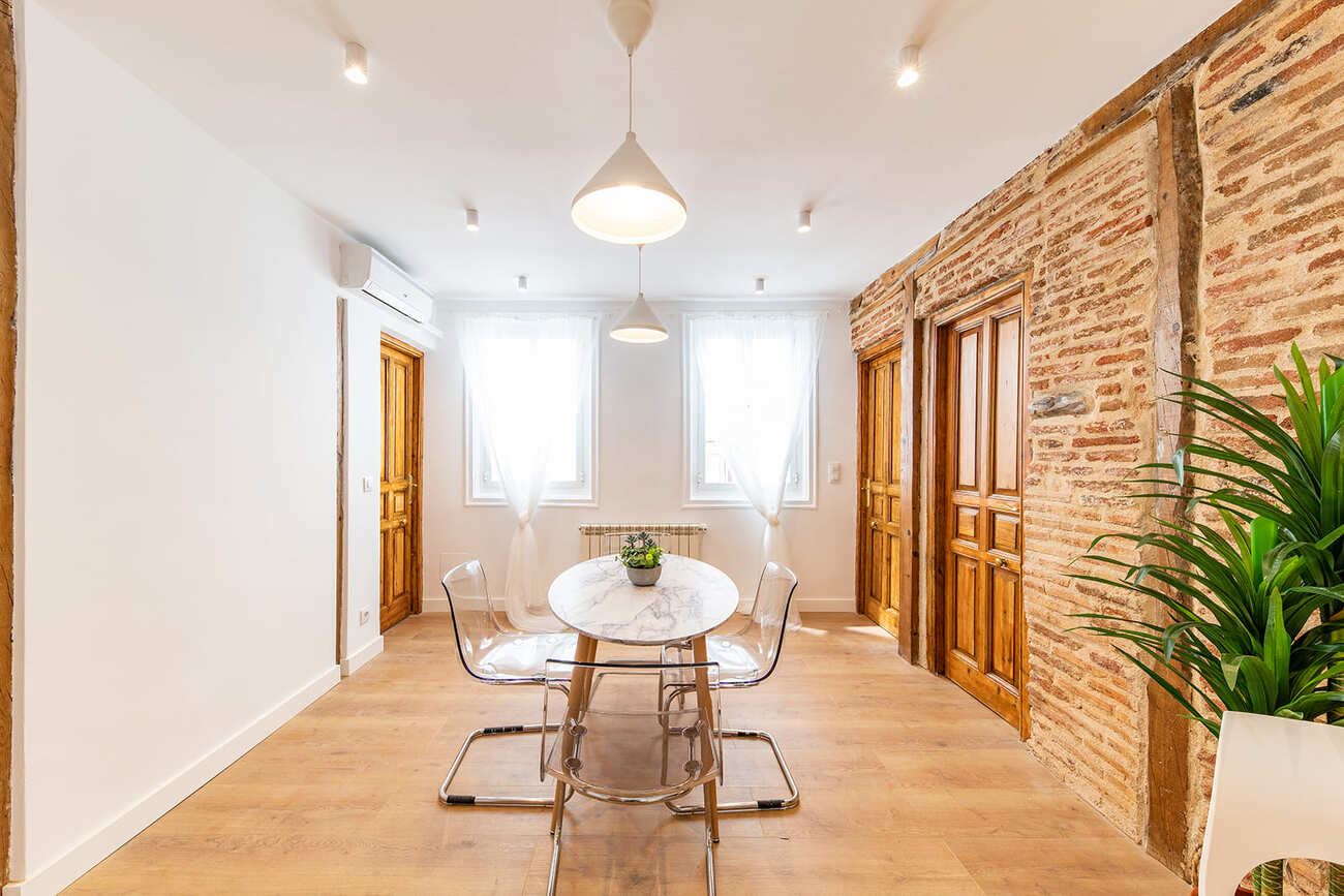 El diseño de esta vivienda fue innovador, redescubriendo elementos arquitectónicos y estructurales como las vigas de madera de la finca y restaurando el ladrillo original para dejarlo a la vista, brindándole al piso una elegante relación entre lo clásico y lo moderno.